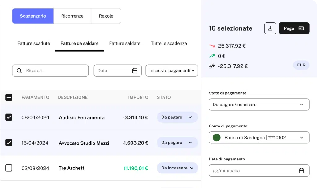 Collega il tuo cassetto fiscale e controlla automaticamente quanto è stato saldato e quanto resta da incassare. Il SAL si aggiorna da solo man mano che i lavori avanzano e la fatturazione si allinea automaticamente allo stato reale del cantiere.