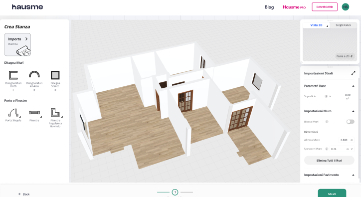 Mostra al cliente la casa dei suoi sogni con una visualizzazione 3D del risultato finale. In pochi secondi, ottieni il gemello digitale 2D e 3D della piantina catastale e usalo come base concreta per confrontare insieme soluzioni di arredo, materiali e disposizione degli ambienti.